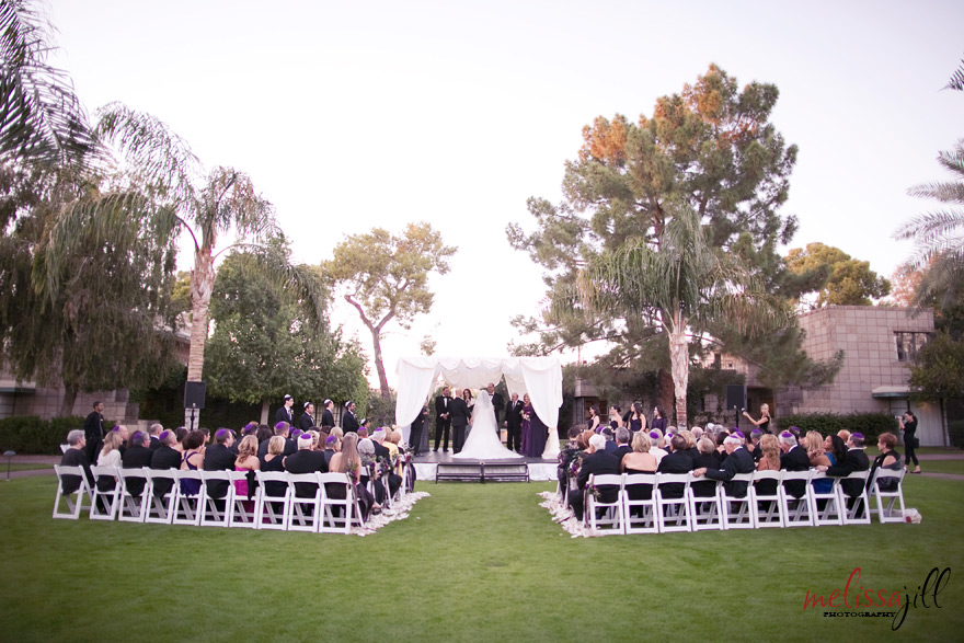 Vendors: Wedding Coordinator: Ashley Gain // Ceremony & Reception Venue: Arizona Biltmore // Florist/Decor: Petal Pusher // Linens: Southwick Linens // Rentals: Classic Party Rentals // Dress: Casablanca from Lillian Lottie Couture // Hair: Ruca Bowman of Hautie Rouge // Makeup: Linda Wagner // Stationery: Celebrations in Paper // Officiant: Rabbi Micah Caplan // Band: Shining Star Band // Strings: Sweetwater Strings // Cake: Classic Cakes & Confections // Cinematographer: Simply Cinema