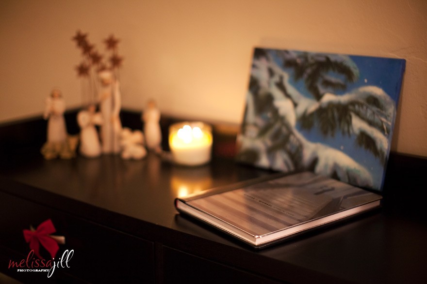 I love how Kindra still has her wedding album prominently displayed in her house. At this time of year it is friends with the nativity scene: