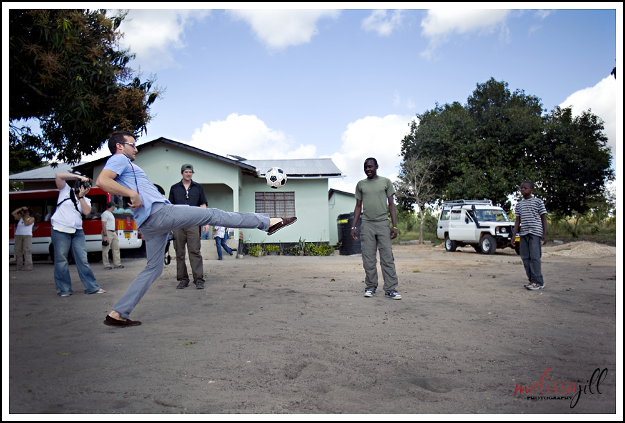 Some of the guys from our team kicked around a soccer ball with some of the boys. Check out Ben Harrison's awesome form. It's definitely not easy to do this with camera in tow: