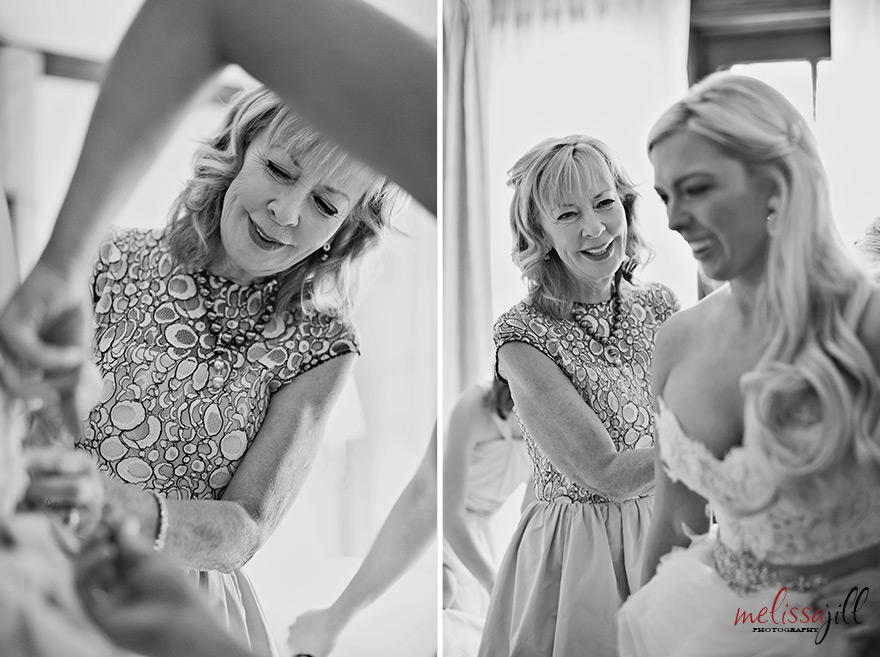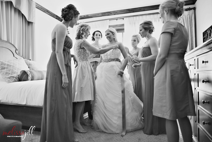 Kaitlyn's mom and bridesmaids helped her into her dress: