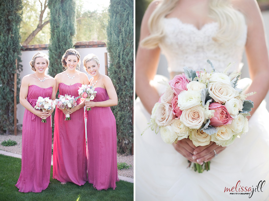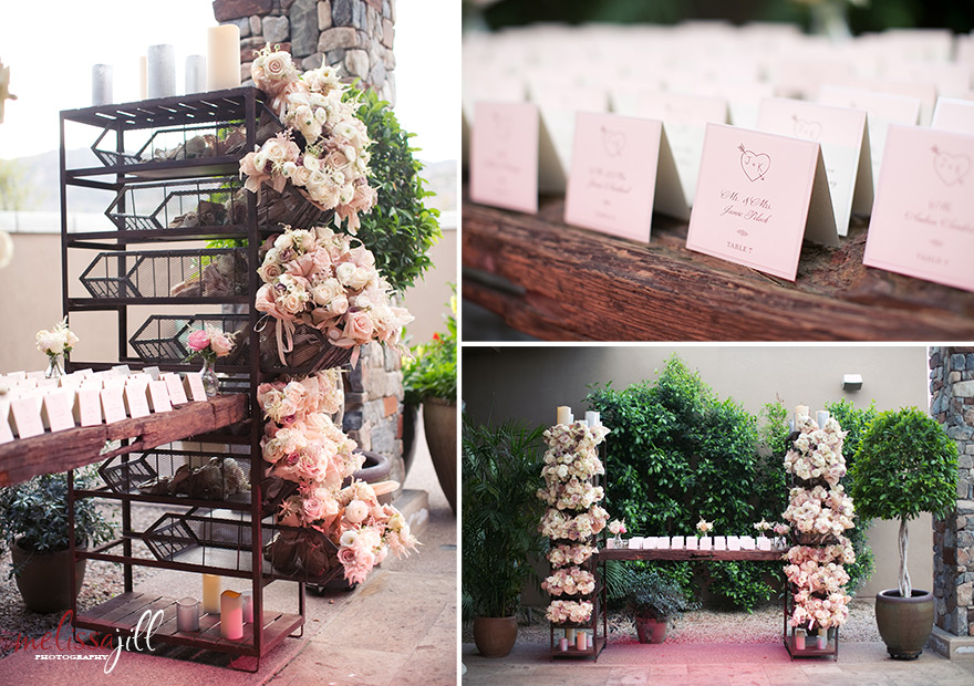 After cocktail hour, the guests were invited to head down the street to Paradise Valley Country Club, where the reception took place. They were greeted by this fabulous escort card table complete with individual bouquets of fresh flowers that each guest was able to take home with them: