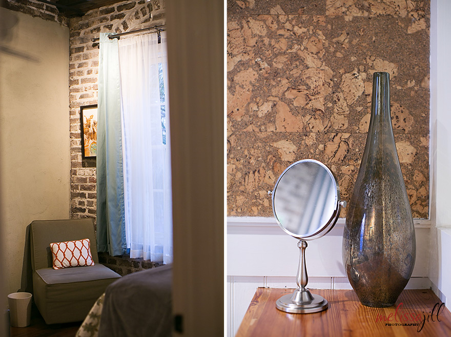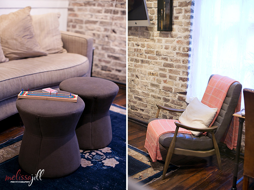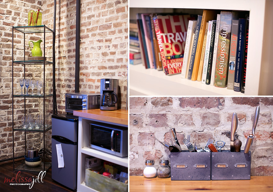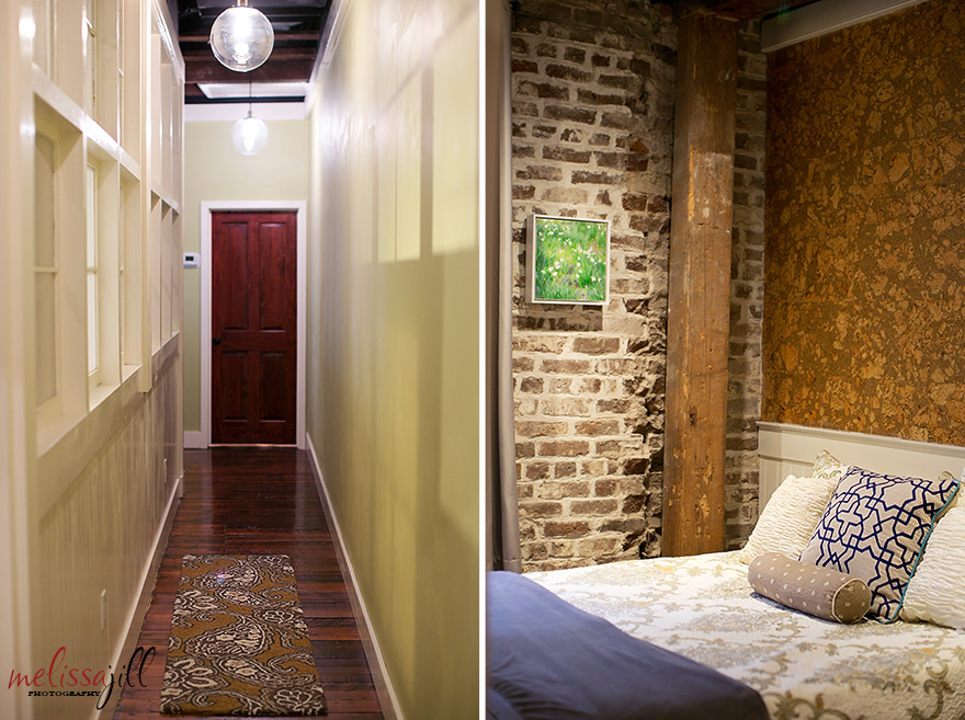 I found an apartment for rent on VRBO.com in the heart of downtown Charleston on the 2nd floor of an art gallery. It was crazy-amazing both location-wise and for its hospitality and charm. I only brought my 50mm 1.2 on the trip, so that wasn't ideal for shooting the space, but I wanted to give you a taste anyhow. Below left is the hall in the apartment leading down to the bathroom. There are two bedrooms on the left and at the end is the living room/kitchen.