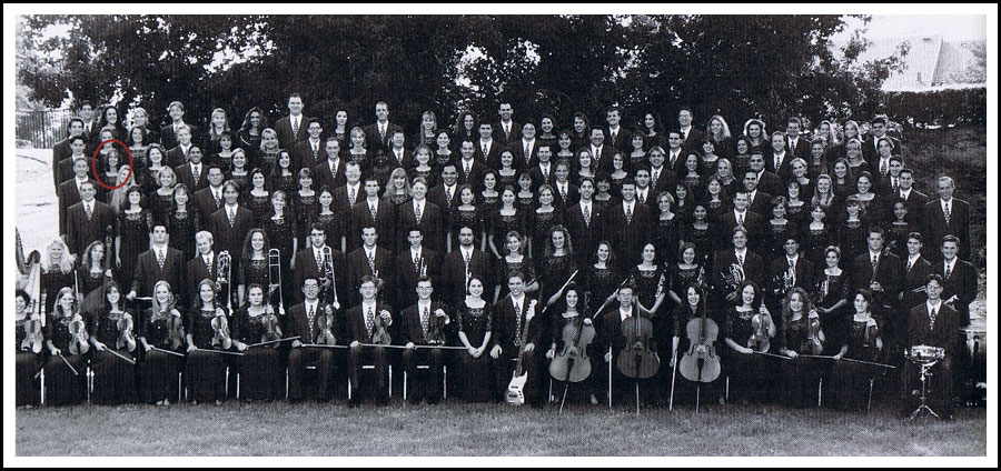 My Junior and Senior year I was in the University Choir and Orchestra (UCO) where we got guys and instruments added to the bunch. In this choir, you pretty much knew how good you were based on where you stood in the choir. The best singers were in the middle. Note that I'm second from the end on the left side: