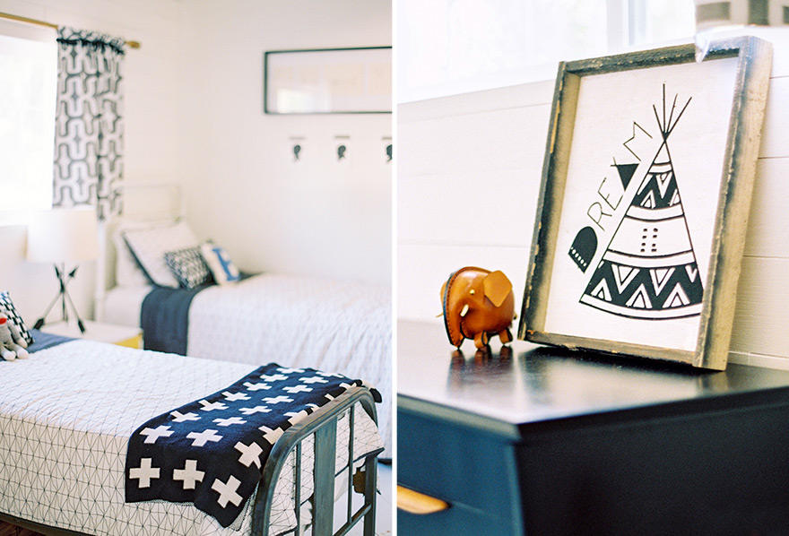 Down the hall past the cute pantry door is the bedroom shared by all three of Coley's boys: