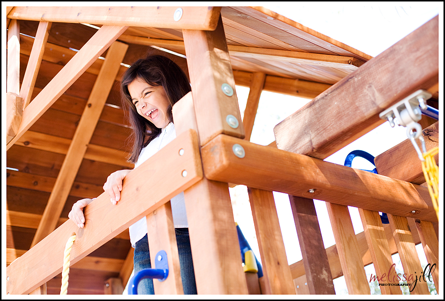 Seven-year-old Quinn showed off her fort in the backyard. I love this candid shot I got of her: