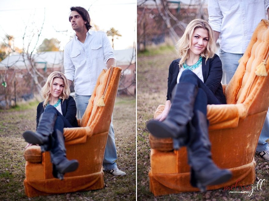 Monday we covered topics ranging from shooting techniques, lighting, interacting with clients, posing and off-camera flash. Then we went out into the good light the hour before sunset so I could demonstrate how I interact with clients, find light, and use compositional elements in the context of a mock engagement shoot. Stephanie Fay and her husband Stephen - local photographers and good friends of mine - were our AMAZING models. We started in my back yard, shot in the alley behind my house, around my neighborhood and ended the shoot in one of my neighbor's back yards. I am in LOVE with how the photos turned out. Of course it helps when you have models like these guys: