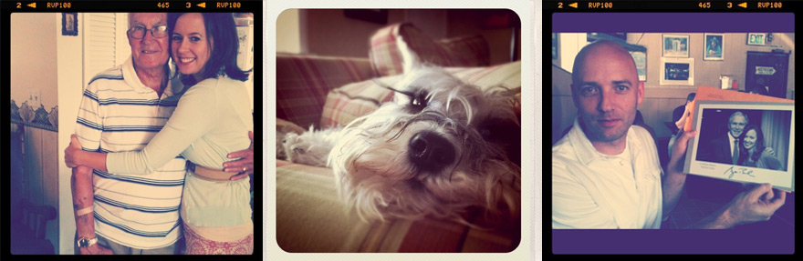 In the middle is an instagr.am shot by my office manager Sara. I was out of the office this week at a meeting and when I got back, she shared it with me. She said she turned around in her desk chair and it looked like the sofa had swallowed Dixie. Her little head was the only thing poking up from a sea of cushions. I'm so thankful Sara took a second to take this photo. I'm in love with it.