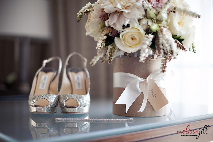 Breanne's bracelet, Jimmy Choo heels and fluffly bouquet made my heart flutter.