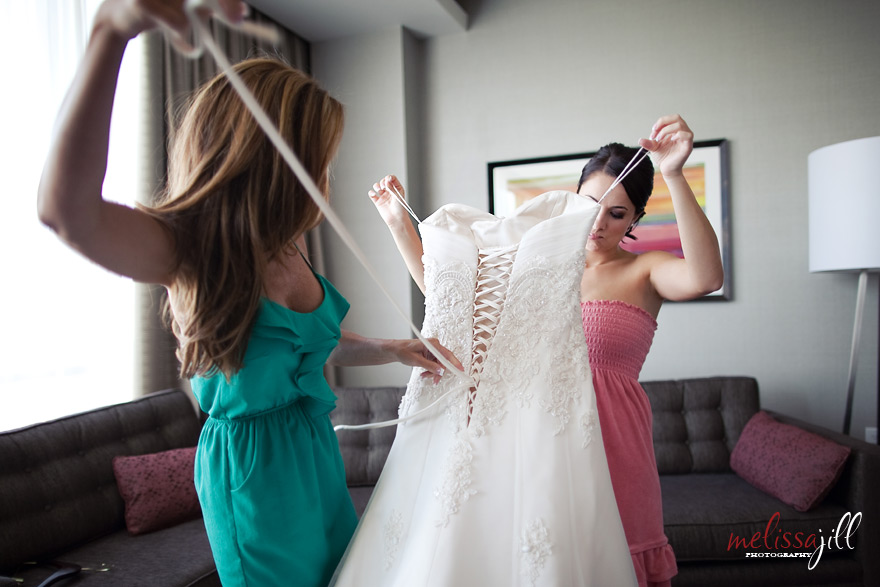 Her mom and sister helped her into her dress: