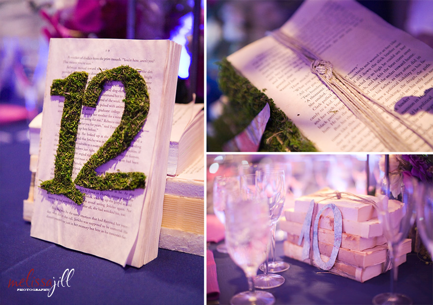Victoria knew that Breanne loves books, so she implemented vintage books into the decor as table numbers: