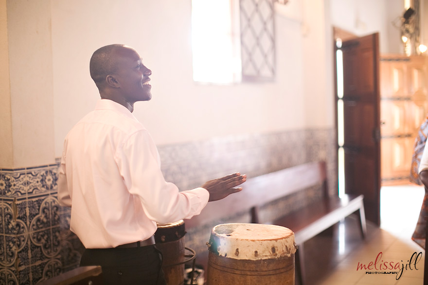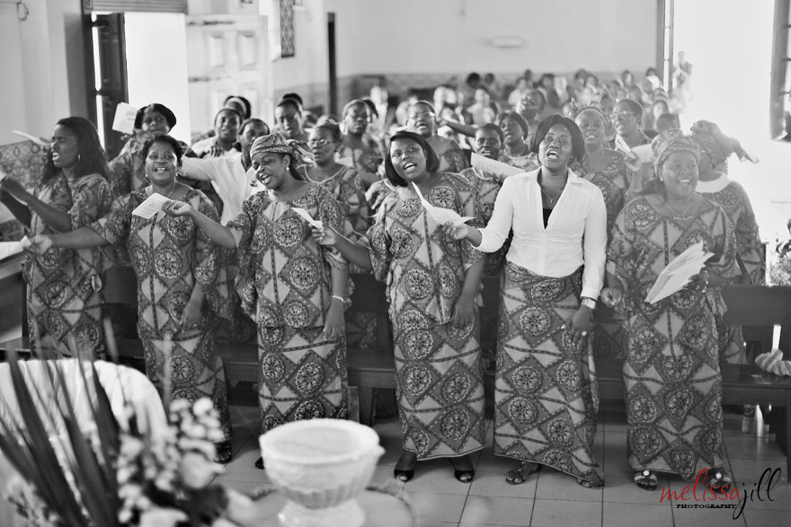 An African choir sang throughout the ceremony and danced in with an offering of goods from the couple on their heads: