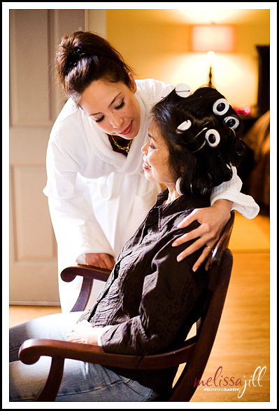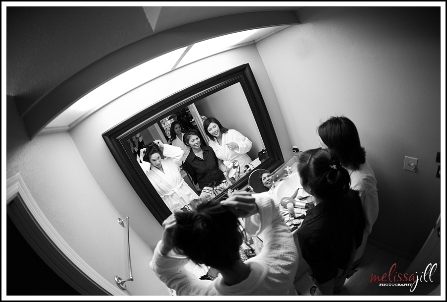 Both Vanessa and Chris's families had me cracking up all day. Vanessa's mom was especially hilarious. Here's Vanessa, her mom and her sister sharing the bathroom mirror: