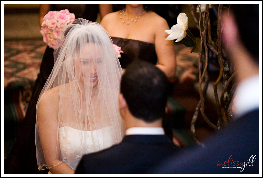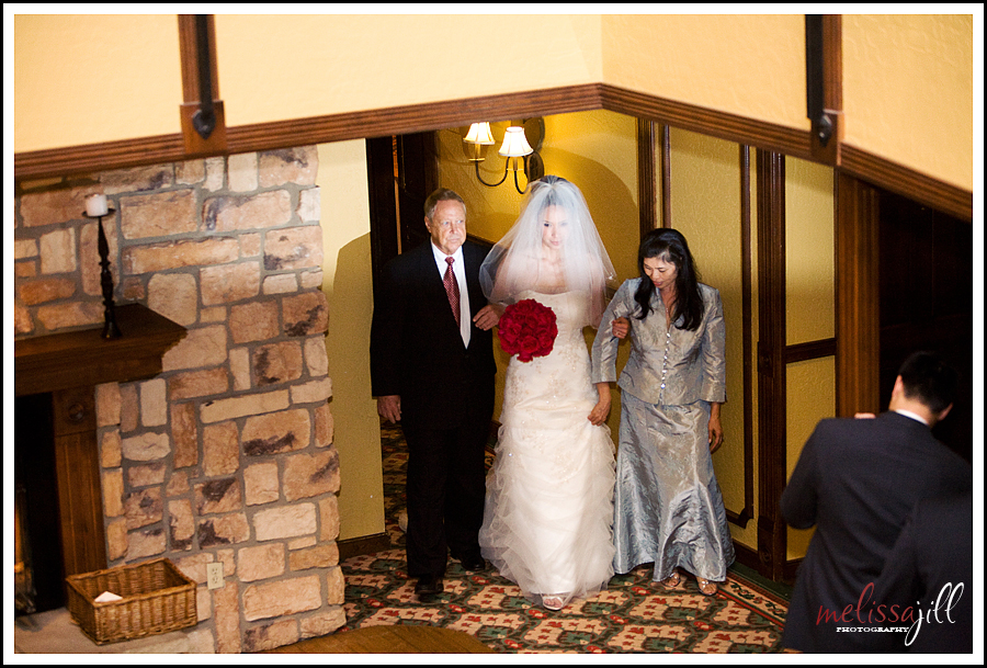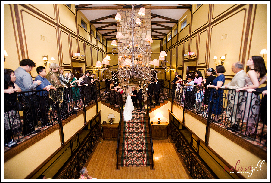 The ceremony took place in the lodge on a beautiful staircase with guests encircling the balcony: