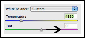 First of all, I shoot everything in RAW on auto white balance so I can make my choices for white balance when I have more time on the computer after the shoot. I shoot a Canon 5D and the auto wb actually works pretty darn well. Then I color correct my images in Camera RAW in Photoshop. These two little sliders are the only things I use to adjust the skin tones: