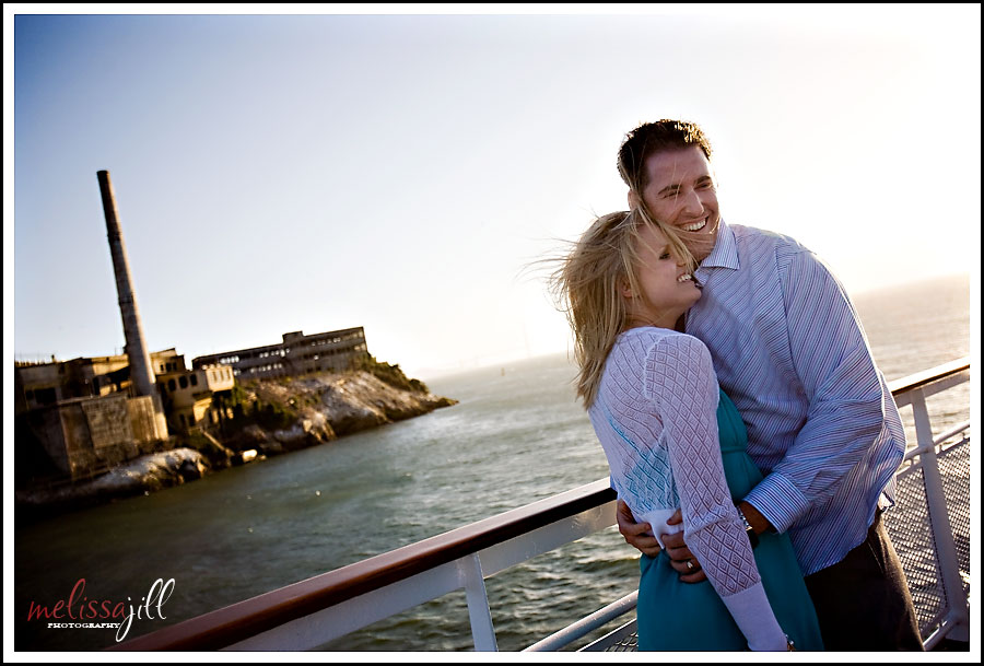 Sarah and Aaron--Michelle's sister and brother in law in front of Alcatraz. The wind was crazy!