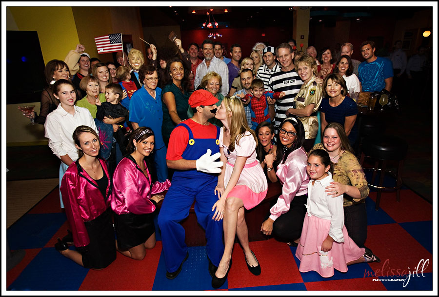 David and Ashley are getting married tomorrow and tonight they had a crazy-fun costume party rehearsal dinner at Dave & Buster's.
