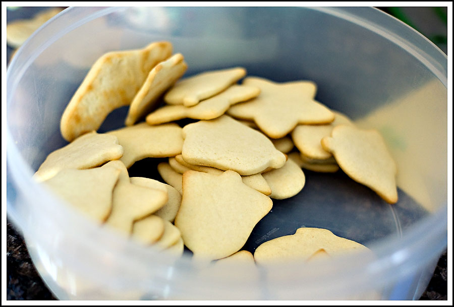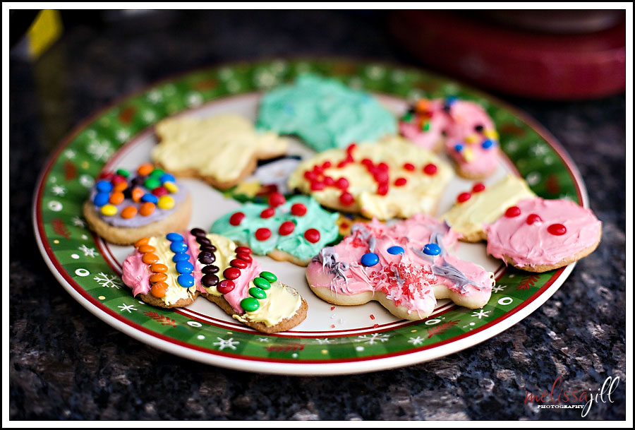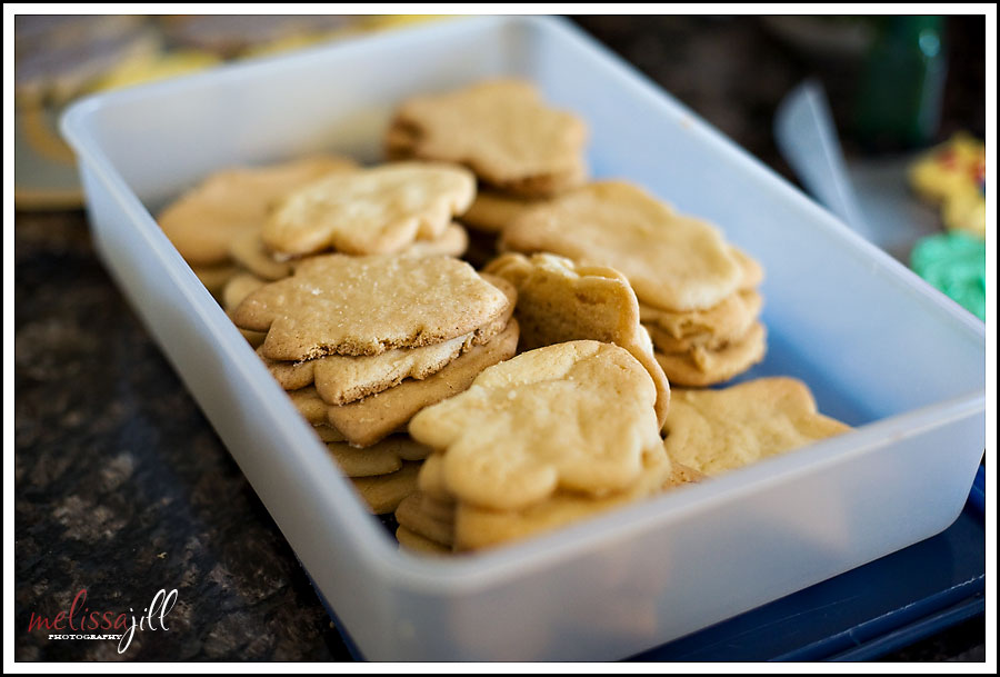 Mine pretty much all looked like crusty blobs that you couldn't really quite make out what they were. Once I got over my cookie-envy, I started the decorating process which consisted of spreading the frosting on two cookies; eating one; spreading frosting on a couple more; eating 5. I think I must have eaten somewhere in the region of 10 cookies throughout the afternoon. The thing I realized is that even though my cookies weren't taking the prize for best--decorated or prettiest, they still tasted pretty darn good.