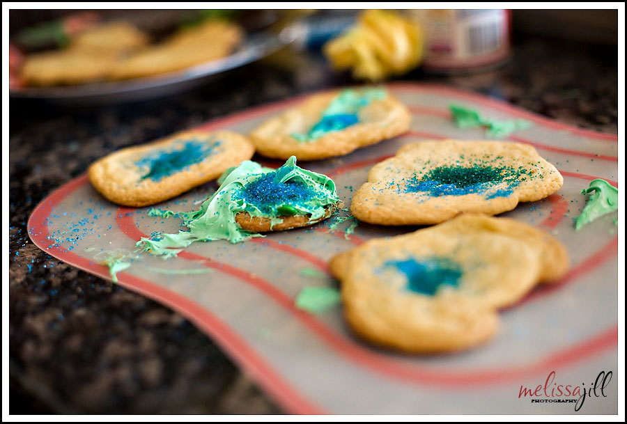 It was fun to watch the kids take part too. Towards the end I noticed that we were running low on the green frosting. Then I looked next to me and discovered why: