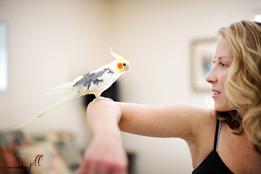 Abby's Cockatiel, Holly, who has been a part of the family for 15 years also got in on the pics: