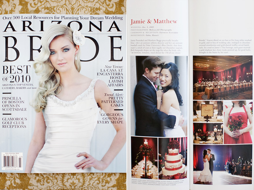 I'm so excited! The new issue of Arizona Bride is out and Matthew & Jamie's wedding is featured in it! These two were married in December at the Fairmont Princess in Scottsdale and had AMAZING red reception details. Congratulations to the team of vendors that helped to pull off this magical wedding!