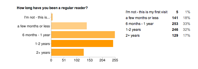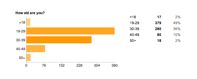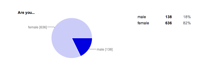 A total of 774 people completed the survey. As I suspected, the majority of you are women: