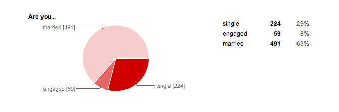 For those of you who are wondering, I used Google Docs for the survey and to tally the results. The nerdy-minored-in-math-in-college side of me had a blast with the charts and graphs! Aren't they pretty? :)