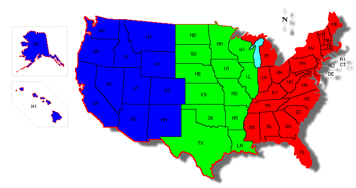 To find out where you live, I tried to be clever and divide up the United States into three areas. This is the map I had in my brain which doesn't really exist in any other realm: