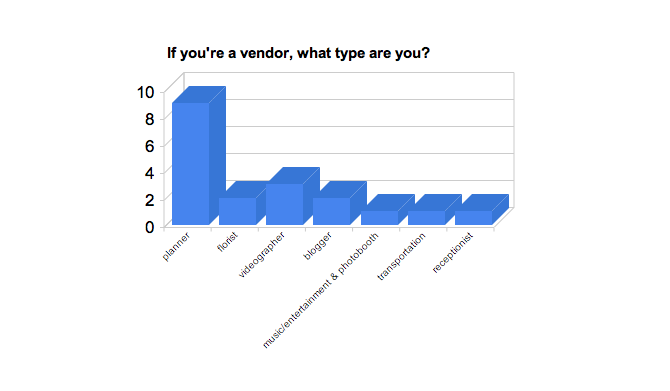 Only 19 wedding vendors filled out the survey and they range in type with most being planners:
