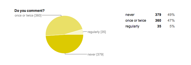 Fully half of you never comment! No wonder many newer bloggers struggle with getting any comments at all. If my stats reflect the norm, only 5% of readers comment regularly!