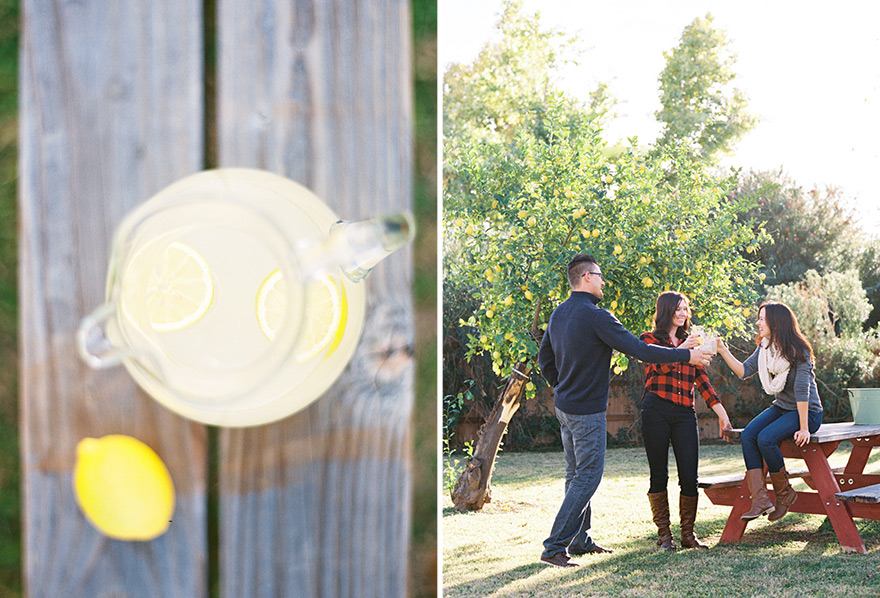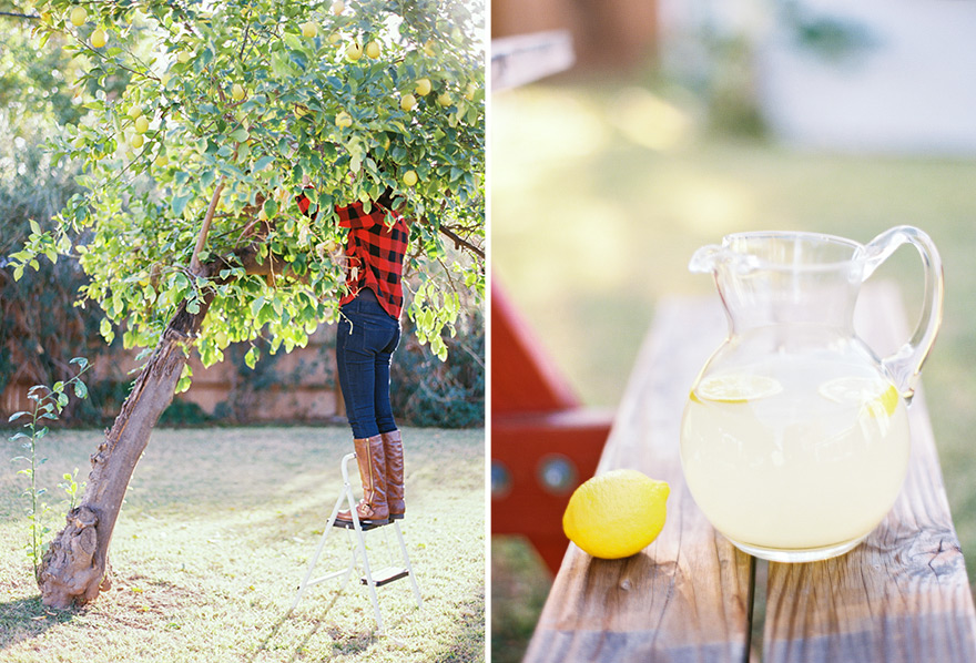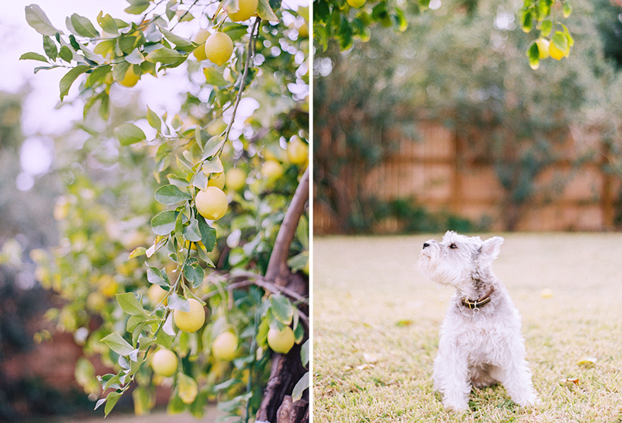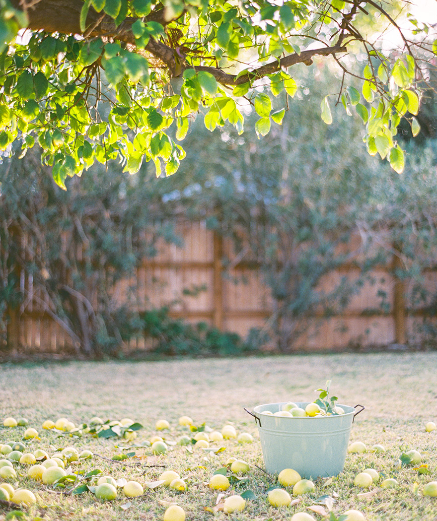 It's become a bit of a tradition for my neighbor friends to come over donning their garden gloves, and we make a party out of it. I pour lemonade, the dogs get in on the fun, and everyone goes home with more lemons than they can possibly use in five years' time. ha! I give as many away as I can and the rest I juice and freeze in one cup increments in breast milk bags -- a brilliant idea I got from one of my new-mom friends. That way I can serve fresh squeezed lemonade year round! It's always a hit so I keep a pitcher on hand in my fridge at all times.