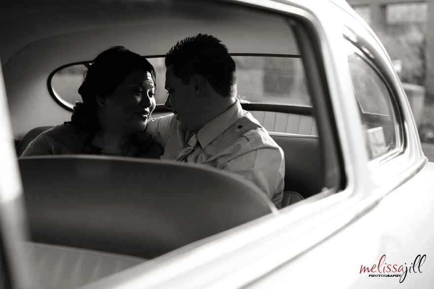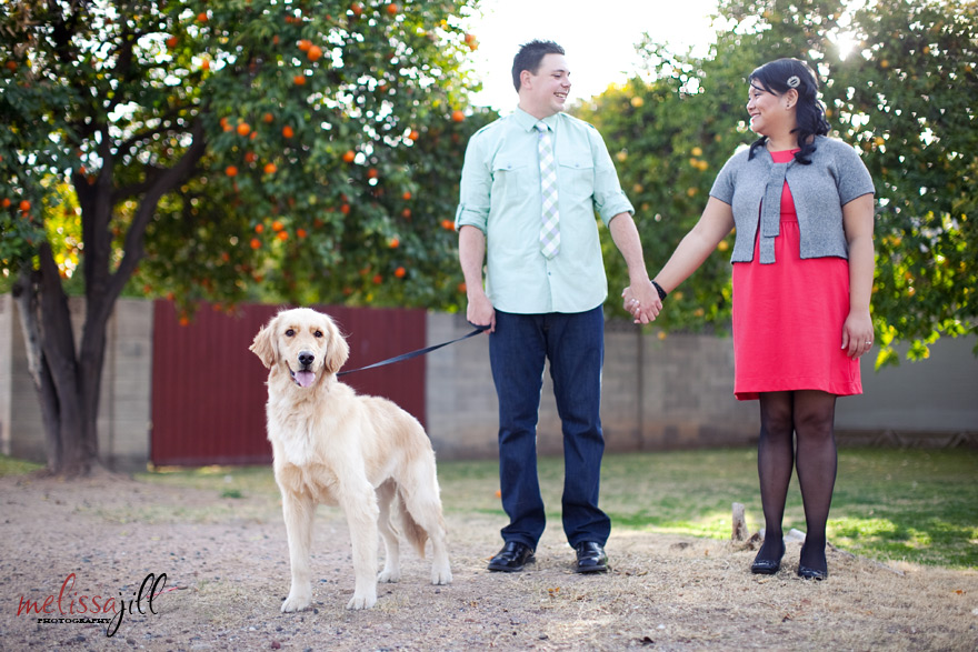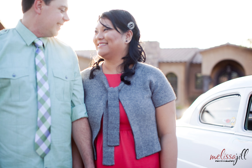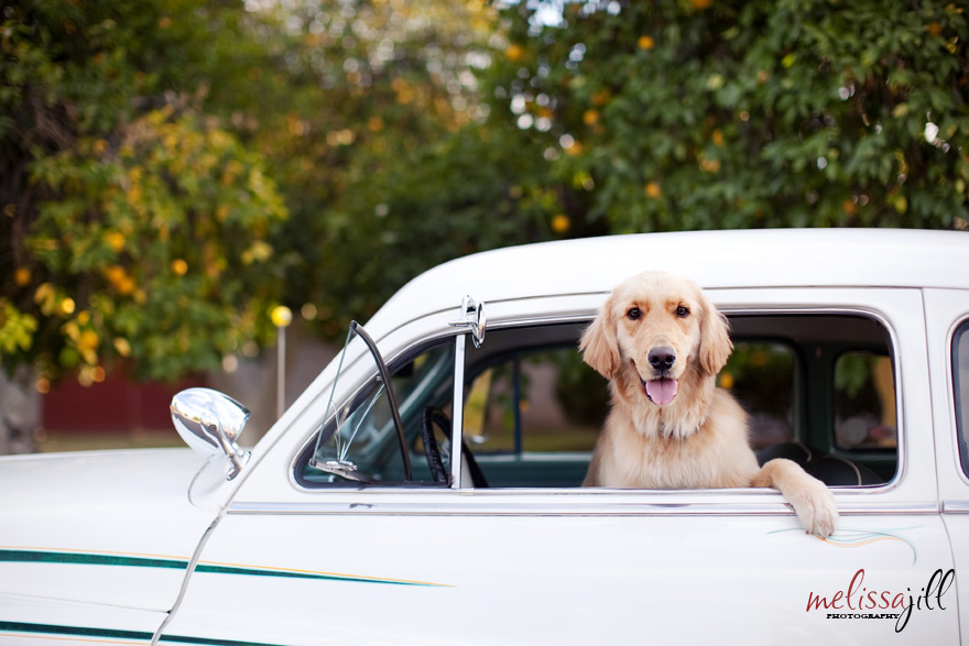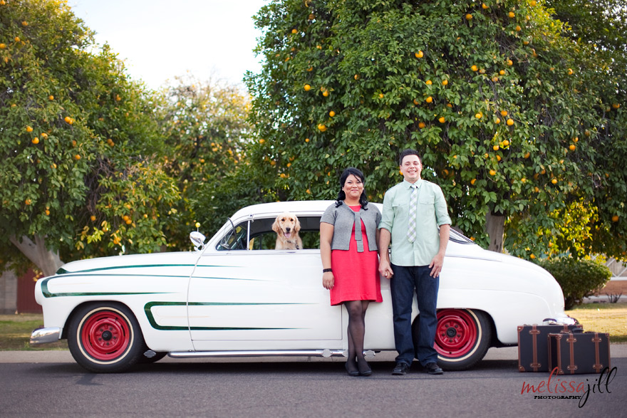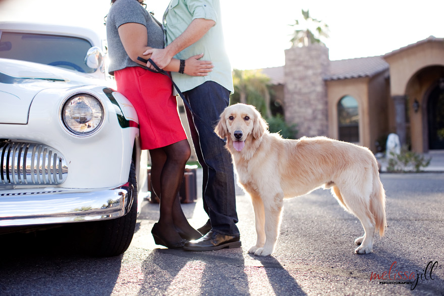 Can you tell by this first image how fun this engagement shoot was!? I absolutely LOVED that Jay and Lisa were up for putting their fun personalities and some of the things they love most into their shoot. We met up on Saturday in the Arcadia district of Phoenix and Jay and Lisa brought along their '49 Mercury and their 2 year old Golden Retriever, Mason. When Jay first got the Mercury, he thought it would serve as a great chick magnet. But they both joke around that it has turned out to be better for attracting old men. And they're right! During our shoot we had two men over the age of 60 approach Jay to talk about his car!