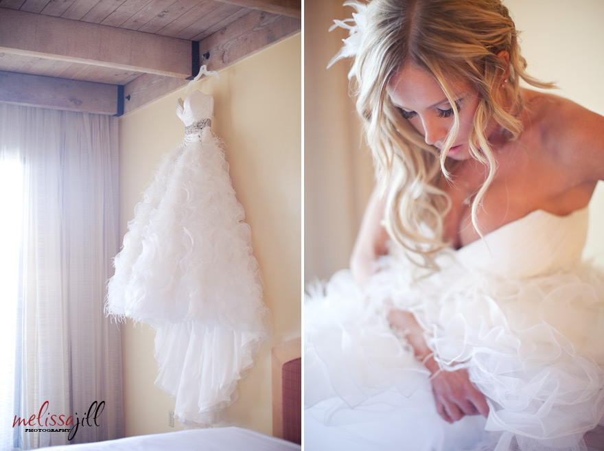 This next image of the dress on the left from Eric & Kari's wedding was taken in a VERY small, cluttered, ordinary hotel room. We rearranged furniture, moved pillows and made a bed to make this location work. (50mm, ISO 800, f2.0, 1/80)