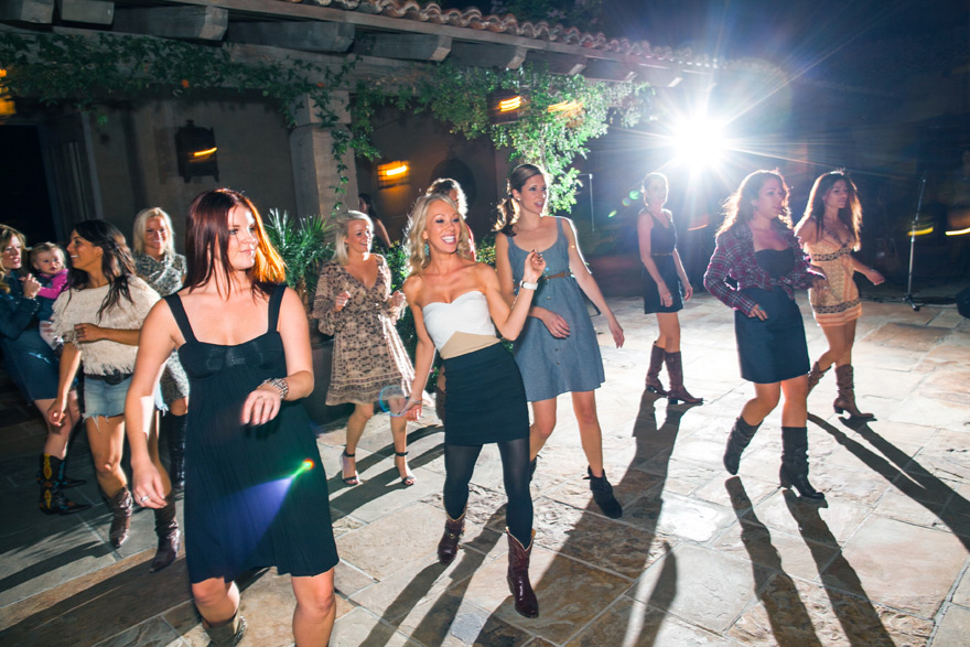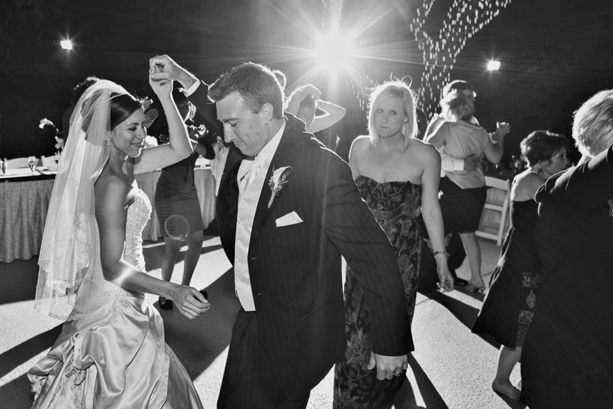 -Set your shutter speed at 1/15 of a second when your flash is your main light. Generally at outdoor receptions, there is no light on the dance floor so you can make use of this technique to allow more background ambient light into your images, giving them more depth.