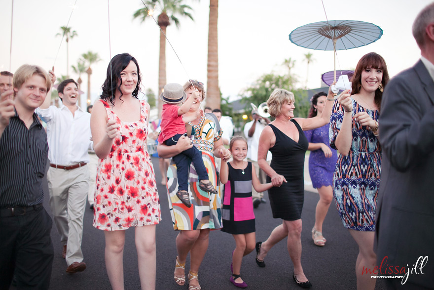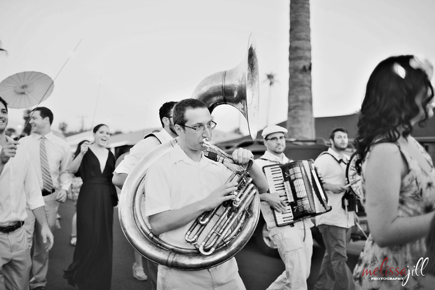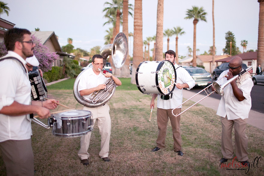 Following the ceremony, guests were led in a spontaneous parade down the middle of the street by this band: