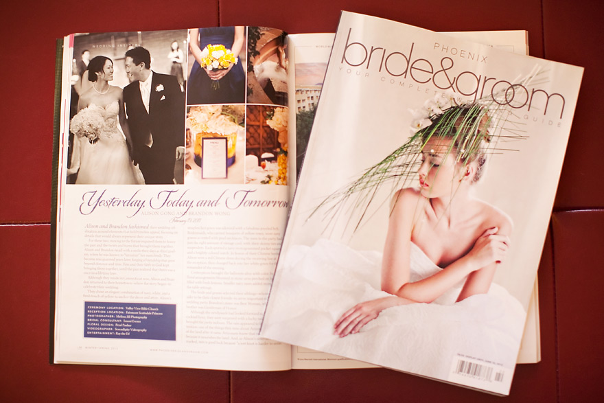 So excited!! Brandon & Ali's gorgeous wedding is featured in the Winter/Spring 2012 issue of Phoenix Bride & Groom Magazine! I love this local magazine -- it's so gorgeous and high quality.