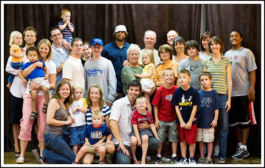 This is my other family--my small church group that I've been a part of for two years now. Last night Portico met for the last time at our current location in another church's building and are moving just across the street into Chandler High School's cafeteria. So we decided to take a group photo. We're missing a few but this is most of us. I had the camera on a tripod and did a timer so I could jump in. I thought it turned out pretty good for the crazy number of kids who were in it! If you're in the area and are looking for a church home let me know! This family has truly blessed my life.