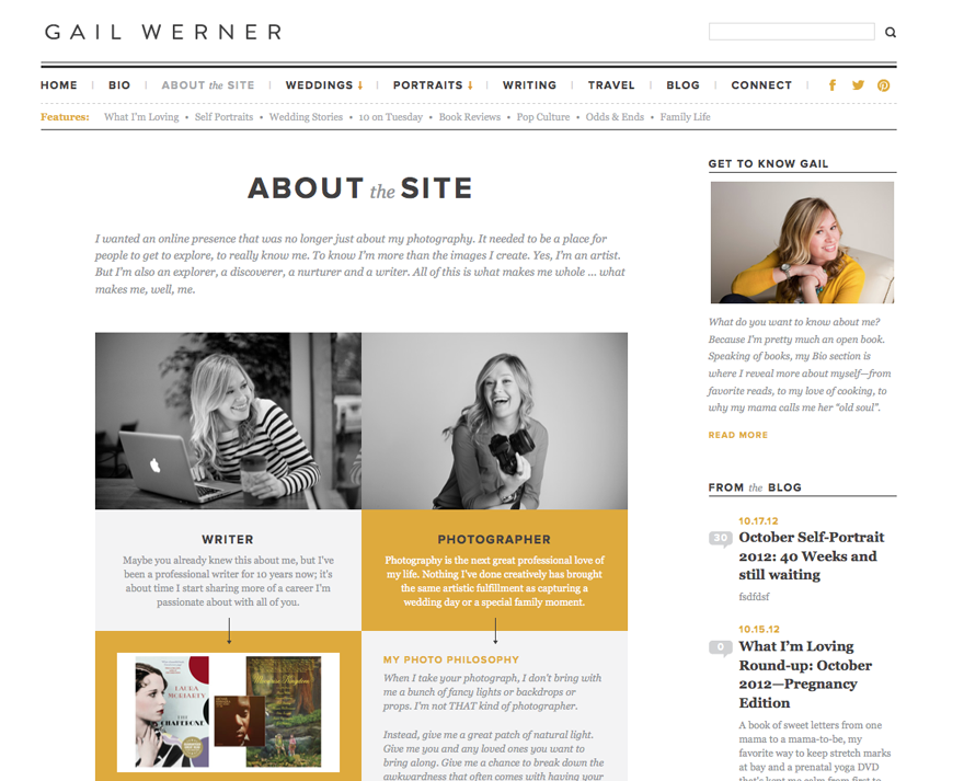 A: Oh gosh, where to start? I remember on the plane ride home, I wrote down so many goals, I filled two pages of the workbook Melissa gave us! I would say the biggest goal I got to check off that same year (2009) was to give myself a better web presence, to really focus on what branding meant to me. Four months after the workshop, my web presence went from this to a ShowIt web site and a new blog that better reflected the real me: