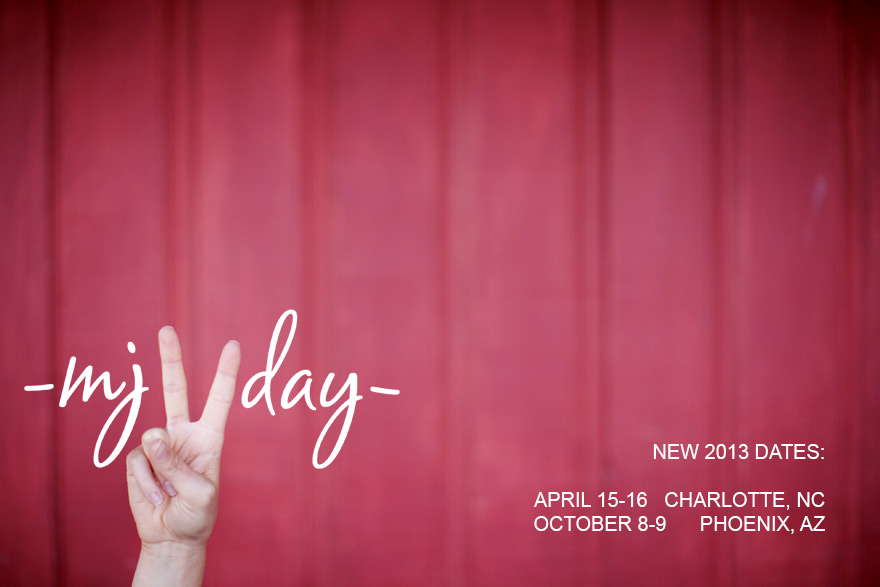 The February MJ2Day workshop is sold out, but today I'm opening up two more workshops in 2013!! Yay! We're headed down south for a workshop in April at a GORGEOUS home in Charlotte. Can't wait to blog some photos to entice you! We'll basically be shooting in Martha Stewart's garden.