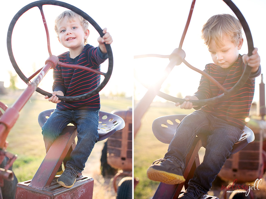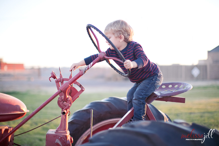 I think we may have a future farmer on our hands. Now if only he had a key and a couple spare tires.