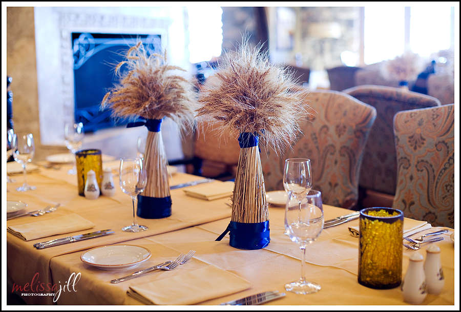 Katina grew up on a wheat farm and wheat was incorporated into many aspects of the decor--great for a Fall wedding!