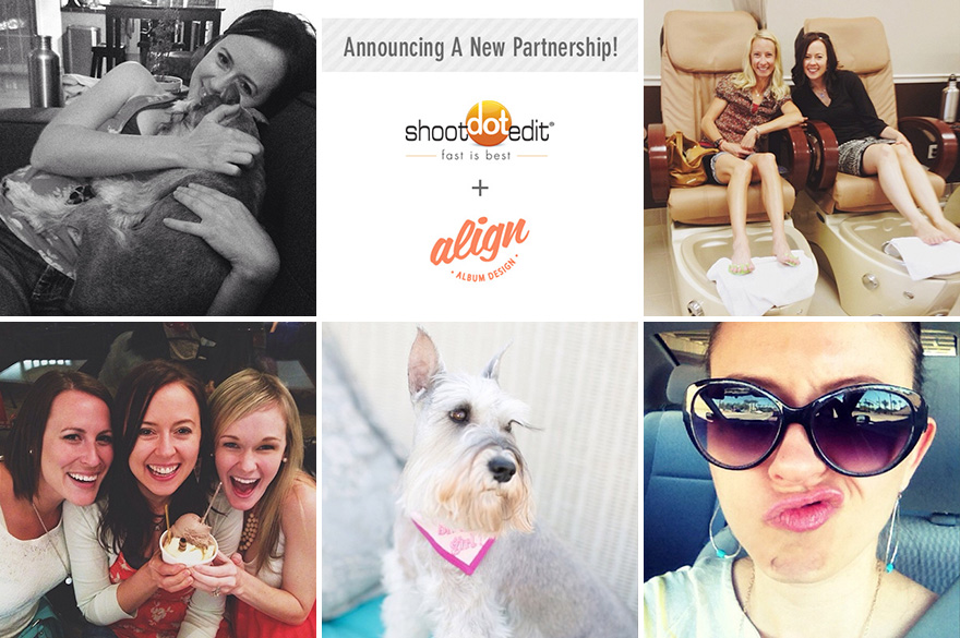 Celebrating: This partnership! I remember sitting down to talk with Jared Bauman, the Co-Founder and President of ShootDotEdit a year and a half ago to ask him if he would ever consider letting go of the album design portion of their service and partnering up with Align, and after a lot of conversations and planning, this exciting partnership is finally a reality! If you are a photographer and missed out on the announcement yesterday, click here to find out how you can get one month of color correction FREE!