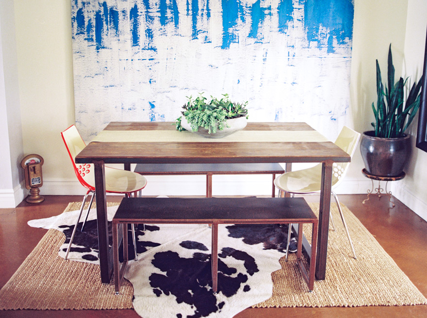 White off-the-shoulder dress: Nightcap // Long floral dress: Alexis from NOVE Boutique in Scottsdale // Kitchen artwork: Jamie Krell // Heels: Prada