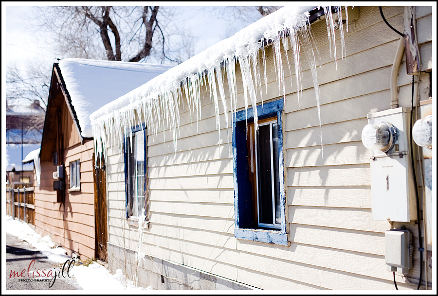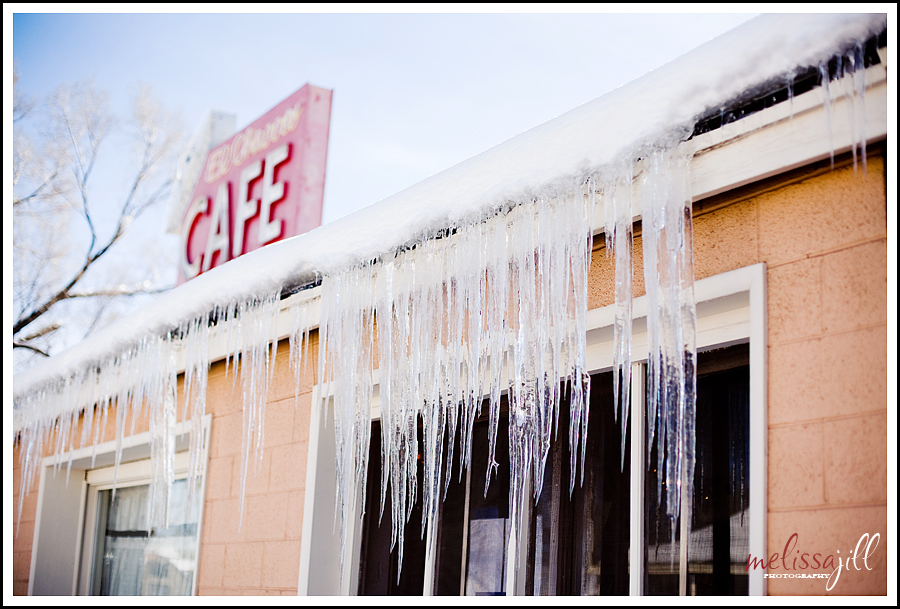 Yesterday I stayed in Flagstaff but opted not to go skiing for a second day. Instead, I moseyed around town shooting wintery stuff. Flagstaff is such a quaint town. It has beautifully colored, unique old homes (unlike Phoenix but like most other towns in the US) and it just looked so beautiful with the fresh snowfall. I was especially enamored with icicles for some reason. The top photo is of my new favorite place to eat in Flagstaff--El Charros Cafe. It's a great family-owned and run Mexican joint that you must check out next time you're there. But can you believe the size of the icicles?