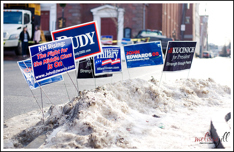 It was interesting walking around a New Hampshire town on the day of the primaries as well. This snow bank was a hot-spot for campaign posters: