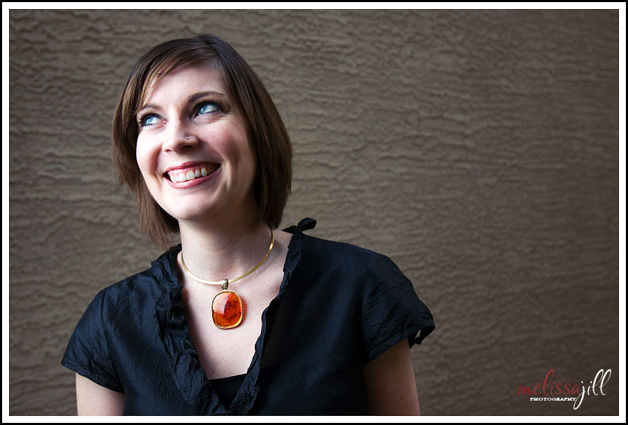 Each day we had two volunteer "clients" help us out. Liene from Blue Orchid Designs helped out the first day. Thanks girl! Here's an example of the difference off-camera flash can make for a portrait.