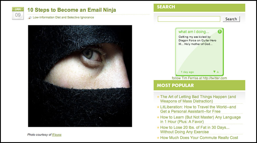 I followed up on one of your suggestions in the comments section of this post and came across this article that was helpful. It caught my attention because of the "email ninja" phrase as it encompasses all I aspire to become :). Check out the article if you have the chance. Here are the main tips I want to incorporate into my email life: