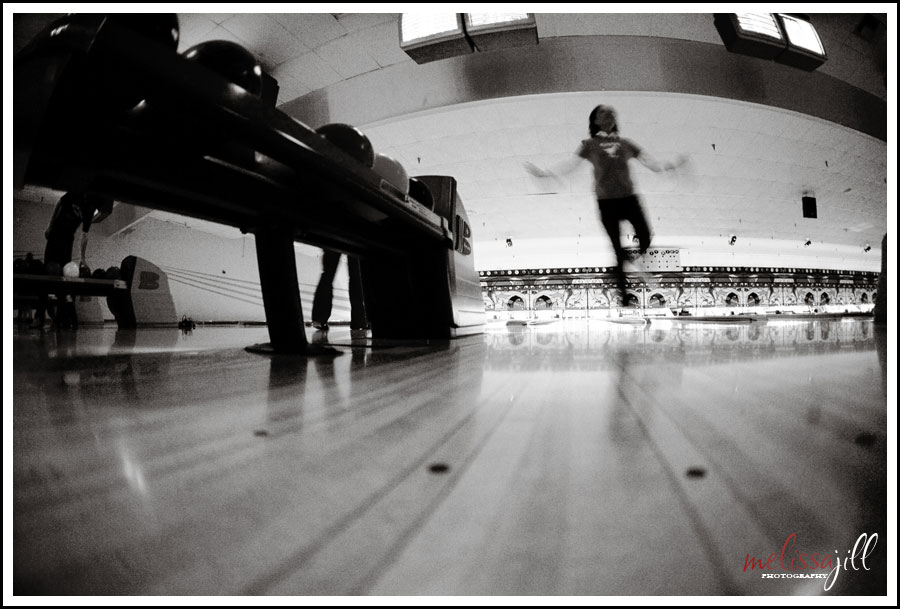 Jamie and I just finished up a wedding today in Palm Springs. It was SUCH a great wedding and I am excited to share the photos. But for now, I wanted to share one photo from last night. Instead of doing an engagement shoot for Valorie and Rob, they had us shoot some of their rehearsal dinner night fun with their family and friends at a bowling alley. It was EXTREMELY low light and pretty tough to shoot in but we experimented and had fun with it and left with headaches from willing our cameras to focus.
