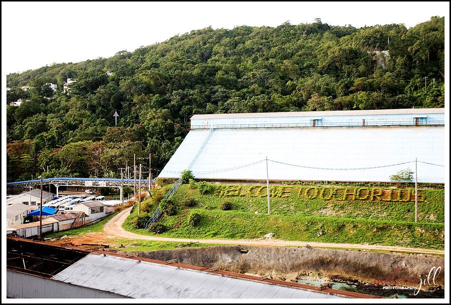 Jamaica was our first stop on the fabulous cruise I just got back from. I've heard mixed reviews on Jamaica but I had a great experience for the short time I was there. This was the view from our balcony as we came into port: