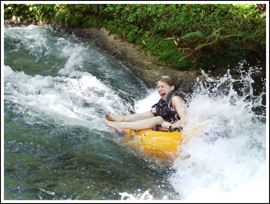 Amy and I decided to do a river tubing excursion. We jumped in a taxi van and took a long, kinda crazy drive to the White River. Here's a shot of us driving on the wrong side of the road: