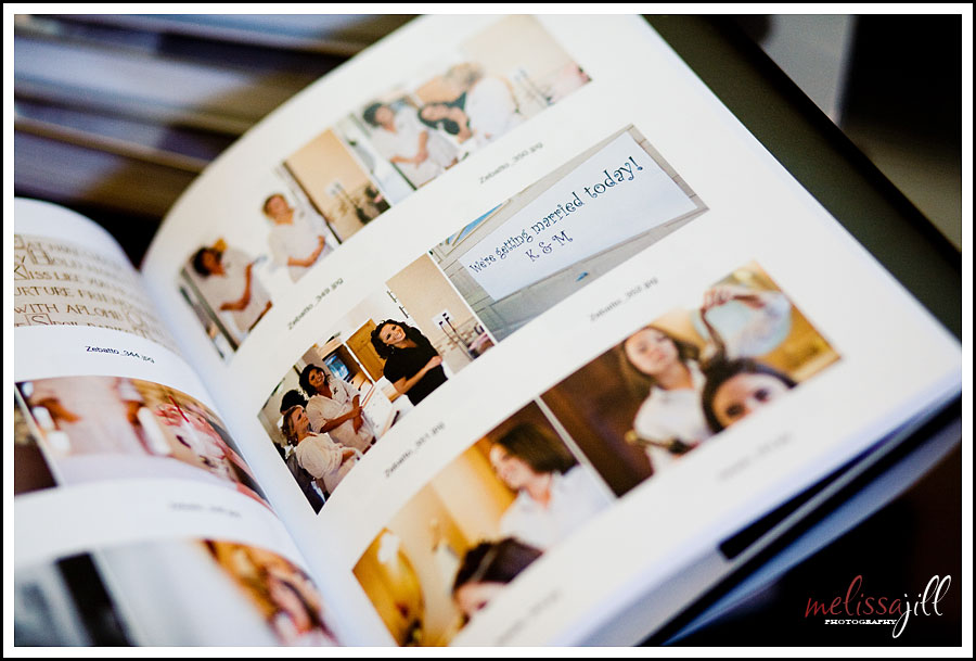 For as long as I can remember I've been offering proof books to my clients that are made through Pictage. They have worked fine but it's time to upgrade to a newer sleeker option. The above book was made by Blurb and it's gorgeous. The binding is sturdy and the book comes wrapped in a full-color dust jacket with a full-bleed photo of the couple on it. The inside pages include all 800+ images from the wedding 6 to a page with the image number underneath: